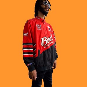 Bud King Of Beers Nascar Jacket / Vintage budweiser racing leather jacket 90s nascar king of beers bud light r2.. Get the best deals on nascar jackets and save up to 70% off at poshmark now! Bud beer racing dale earnhardt jr nascar 2000 leather strapback hat baseball cap. Budwieser nascar king of beers race jacket. Vintage budweiser racing leather jacket 90s nascar king of beers bud light r2. Thick cherry red, black and white 100% cotton body with a fully lined 100% nylon inside.