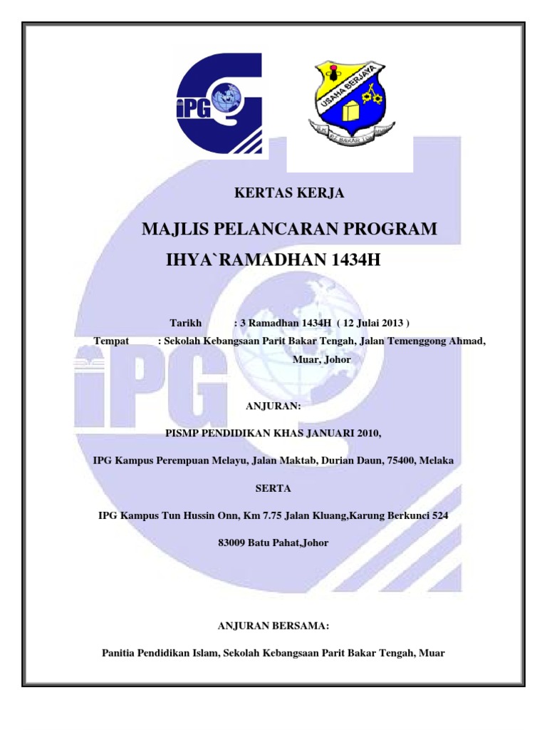 Gimik perasmian hari guru ipgkda 2018. Gimik pelancaran program ihya ramadan 144h 2020m. Majlis pelancaran ihya' ramadanmajlis pelancaran ihya' ramadanmajlis pelancaran ihya' ramadan4 mei 2020 11 ramadan 1441 h3.00 petangtempat : Pelancaran bulan ihya ramadhan sepanjang bulan ramadhan bermula pada 29 jun 2014 sehingga 25 julai 2014. Gimik pelancaran program ihya' ramadhan 1440h/2019 anjuran badan dakwah dan panatia pendidikan islam telah disempunakan oleh tuan guru besar sk bukit kenak.