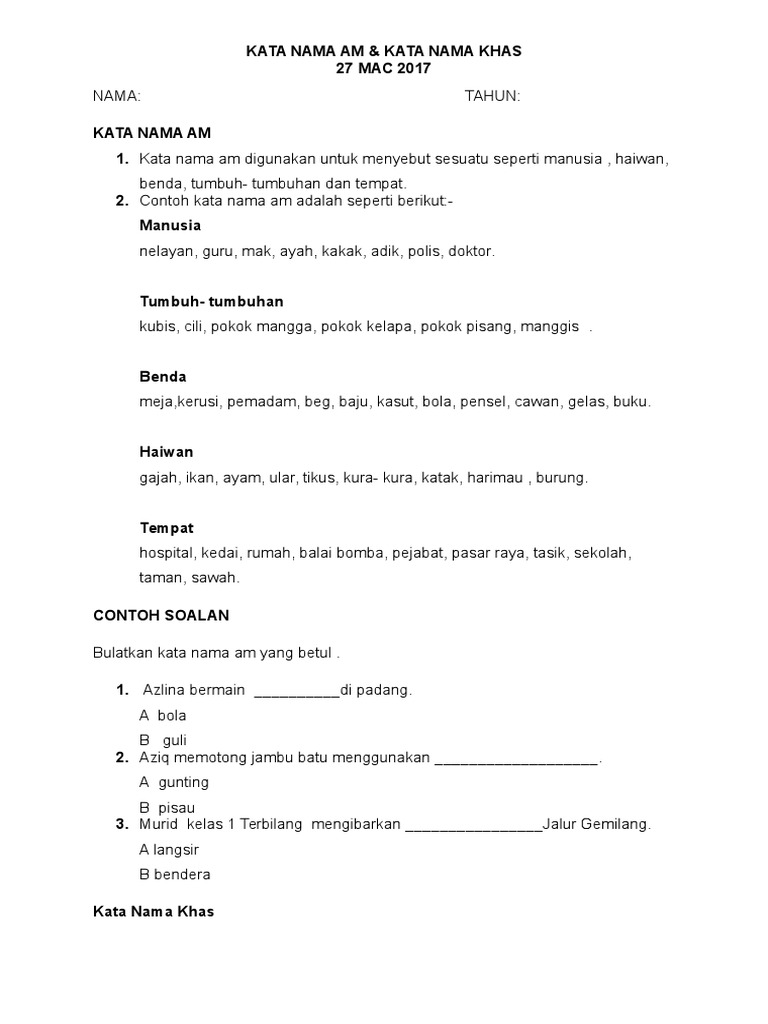 Related : Latihan Kata Nama Khas Tahun 3 / Kata nama am dan kata nama khas dalam subjek bahasa melayu tahun 3..