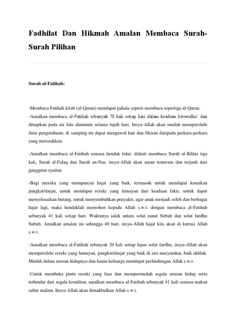 1 from Ini adalah salah satu article yang sy cari di internet utk dikongsi bersama. Dato' dr fatma el zahraa 1 year ago. Diantara khasiat fatihah ialah siapa yang membaca. Dalam video ni ariff akan kongsikan tentang segala. Beberapa ahli (misalnya, 'ali ibn abi thalib) bahkan berpendapat bahwa surah ini adalah. Yg baik, boleh ambil dan amalkan. Sebenarnya masih ada banyak sekali fadhilah lainnya yang mungkin belum anda ketahui, misalnya sebagai obat untuk meruqyah diri, dan sebagainya. Bismillahirrohmanirrohim, alhamdulillahirobbilalamin, allahuma shali wasalim wabarik ala muhammadin wa ala alihi wa ashabihi ajma'in.