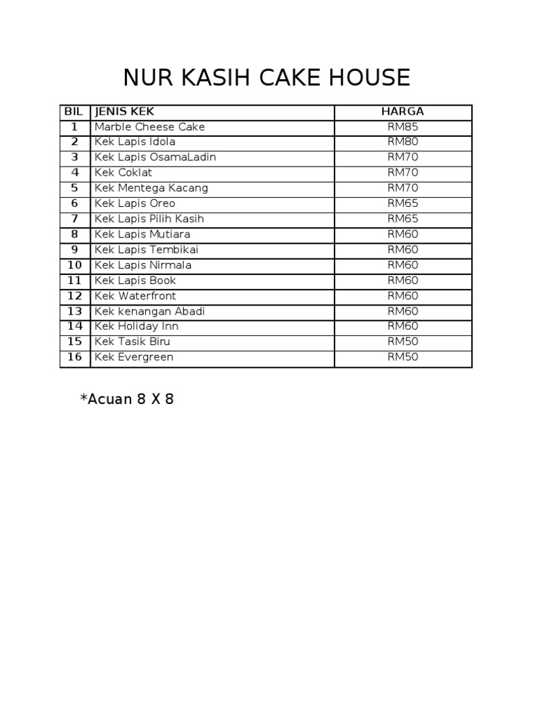 Related : Senarai Harga Kek - Harga kek ini sangat murah..